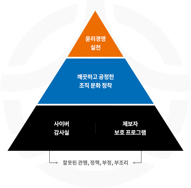 아래에 안내된 채널로 임직원의 불공정한 업무수행 및 부정비리 사실에 대해 상담과 신고를 할 수 있습니다.