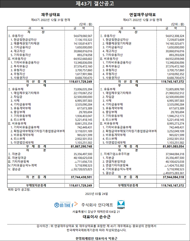 제 43기결산 공고