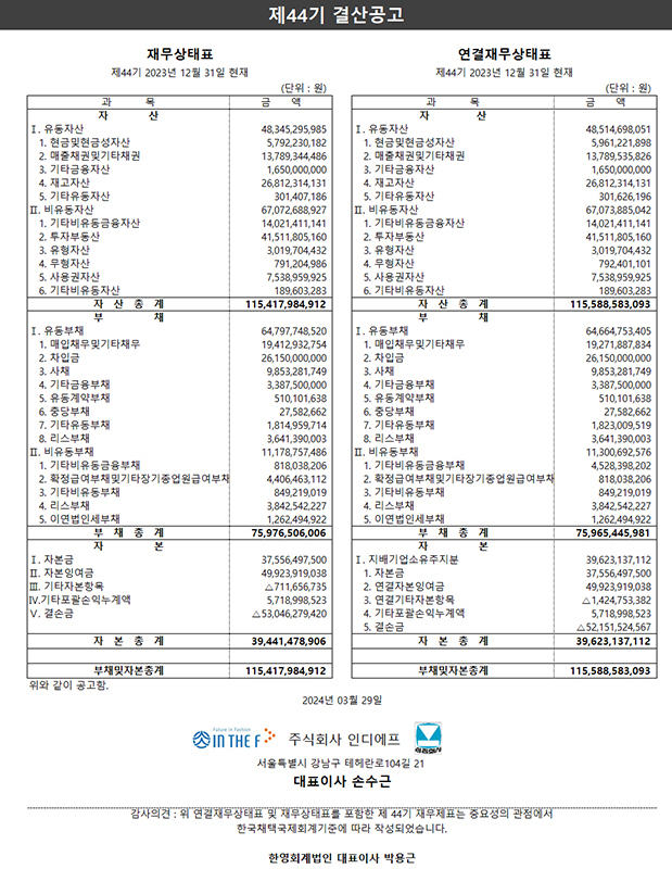 제 44기결산 공고