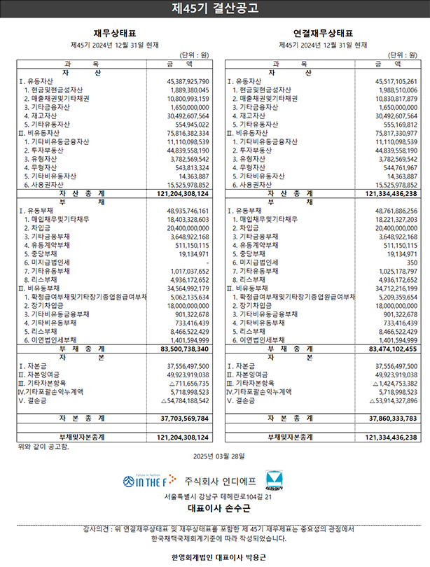 제 45기결산 공고